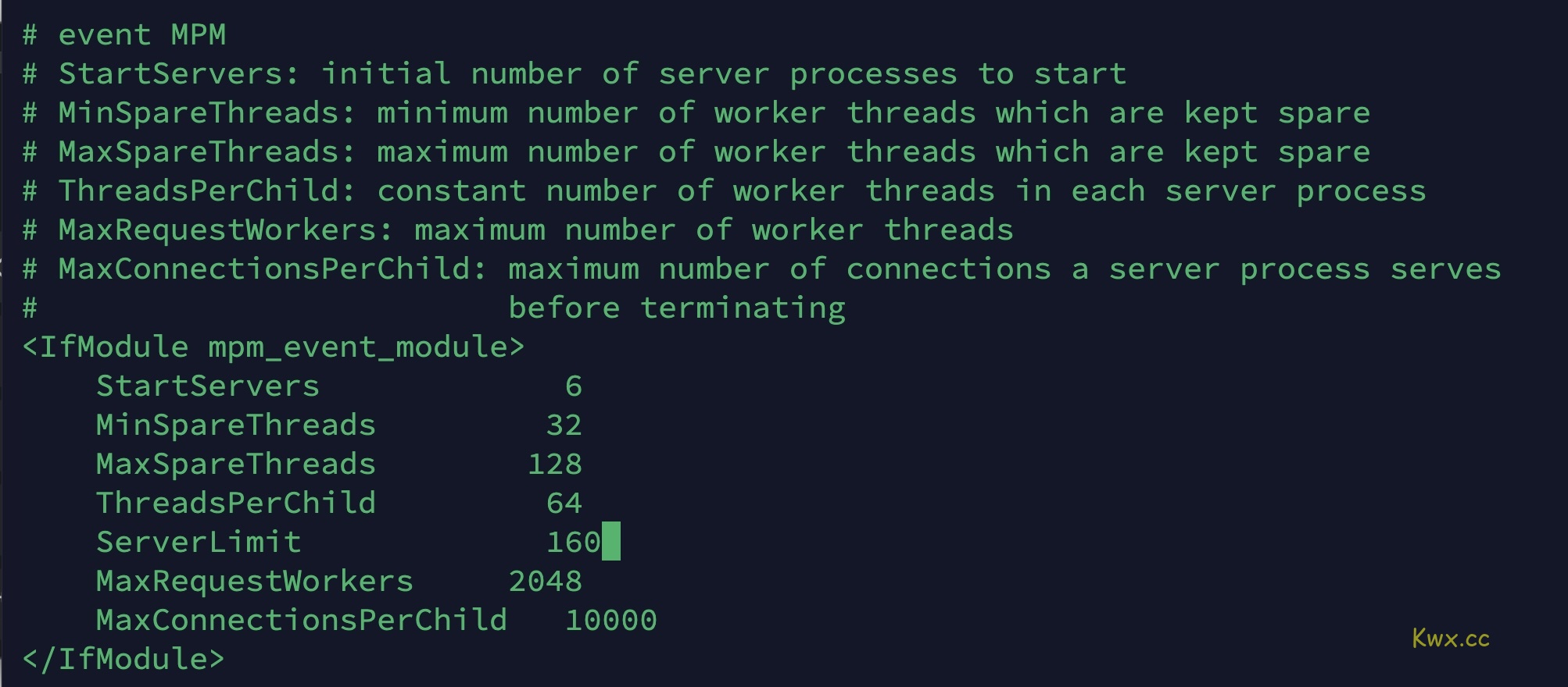 vi /etc/httpd/conf/extra/httpd-mpm.conf